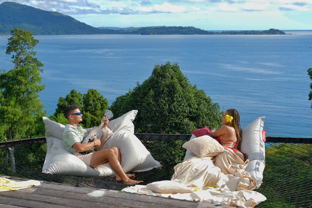 Relax facing the sea, under the song of the birds… Comfortable as a couple in your hammock, unless you prefer the big soft cushions on the terrace…