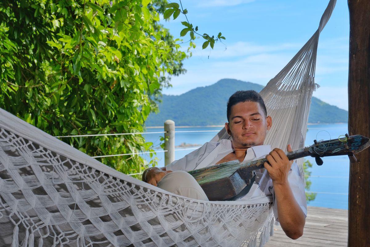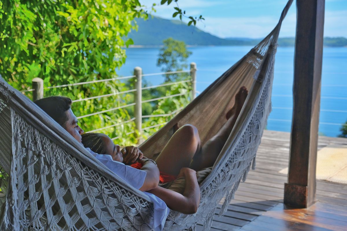 In the evening, observe the stars, or the reflection of the moon on the sea, while lying on your suspended net in front of the terrace…